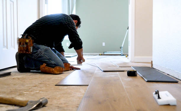 Installation of laminate flooring as a cost-effective alternative that mimics hardwood or stone while offering easy maintenance.